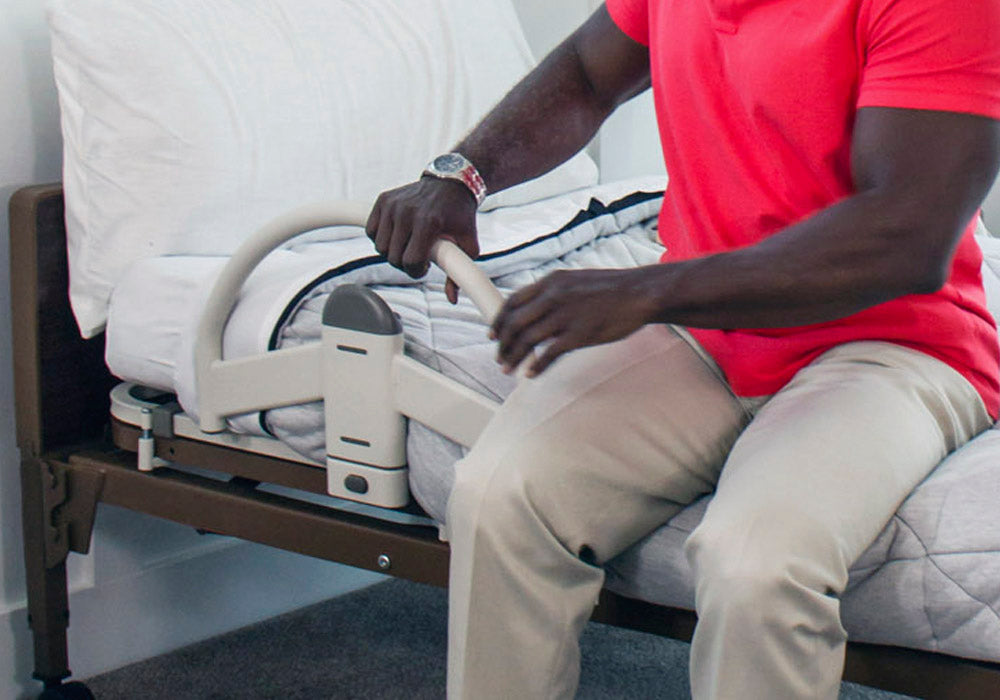Utilice el mango ergonómico de 20,5″ para hacer palanca y obtener apoyo al trasladarse dentro y fuera de la cama.