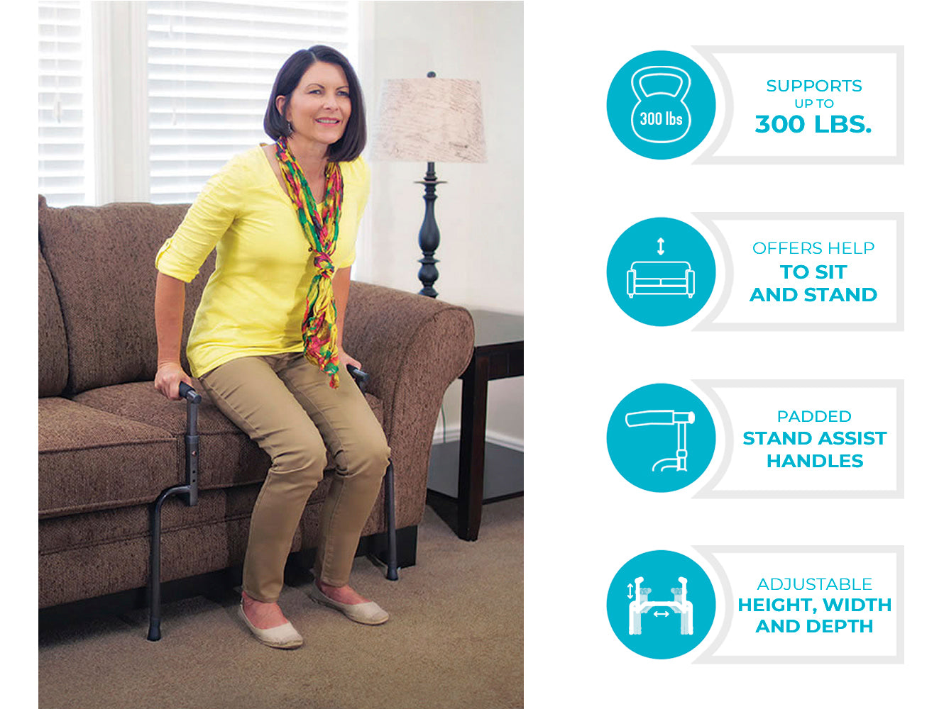Ajustez les poignées et le cadre en hauteur, en largeur et en profondeur pour les adapter au coussin de votre canapé ou de votre chaise