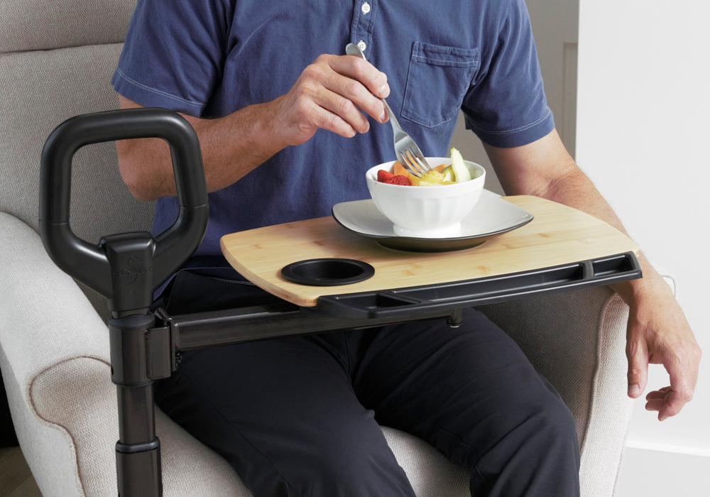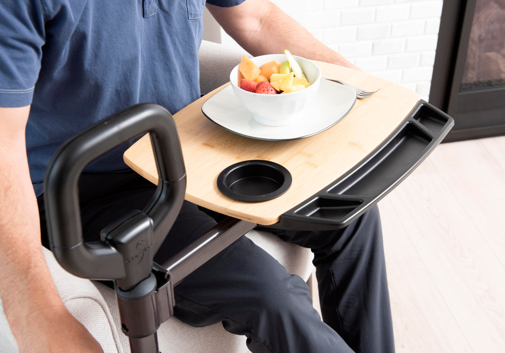 Swivel the tray table 360 degrees to eat meals from your chair or use as a side table