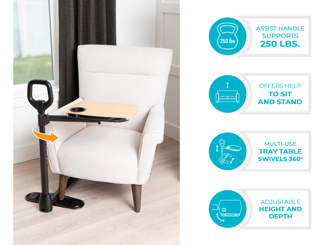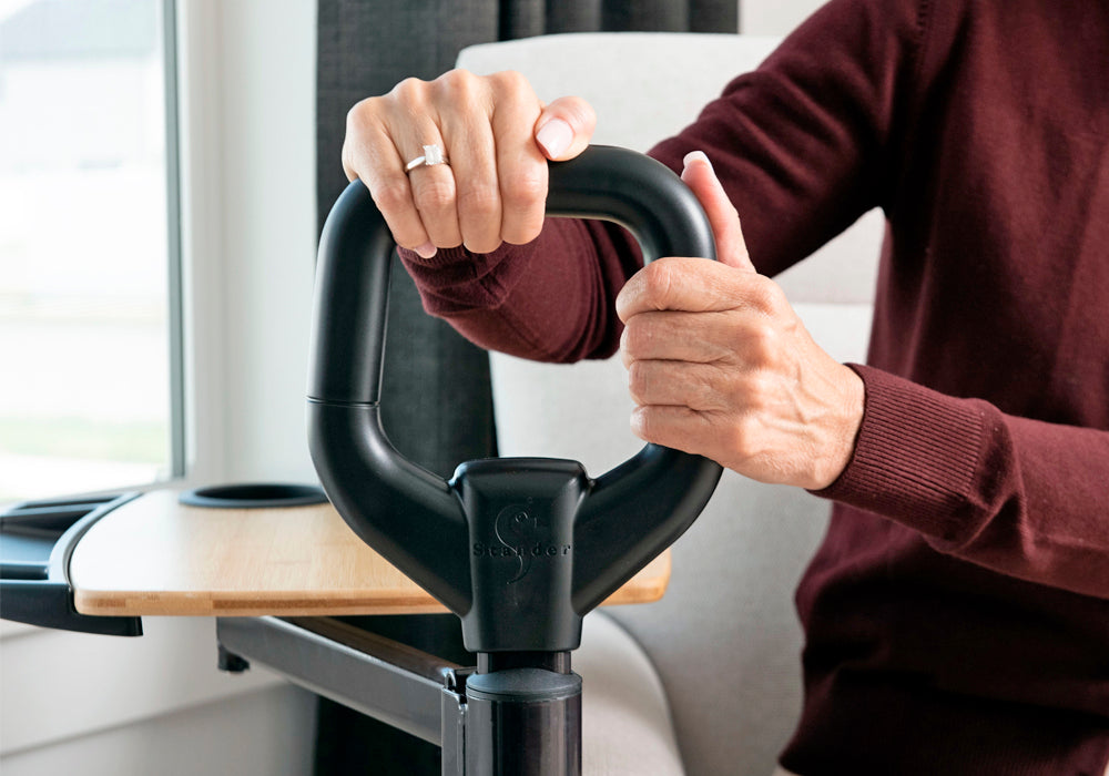 Use the ergonomic standing handle for additional leverage to help sit or stand