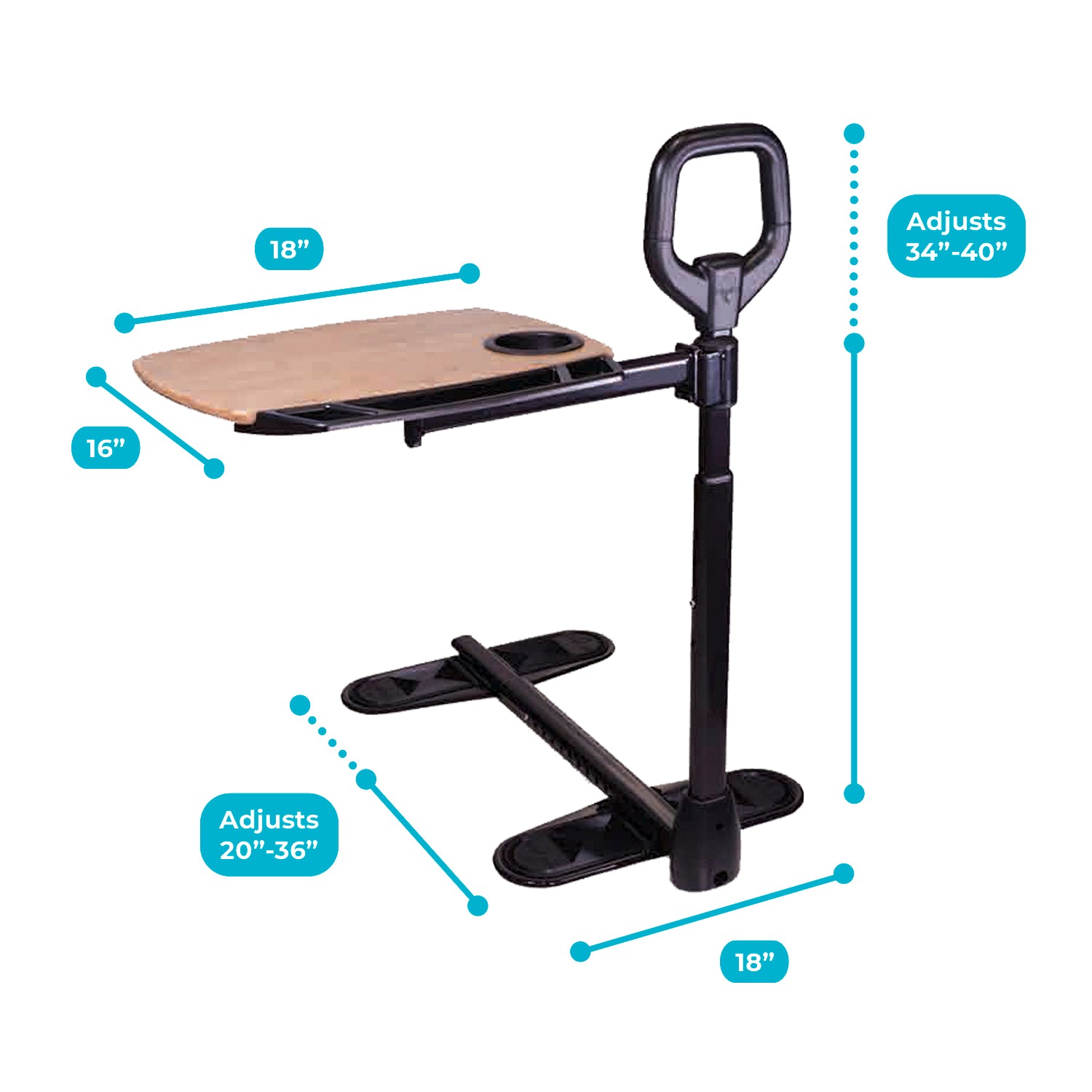 Use the built-in cup holder and utensil tray compartment for additional chair-side storage