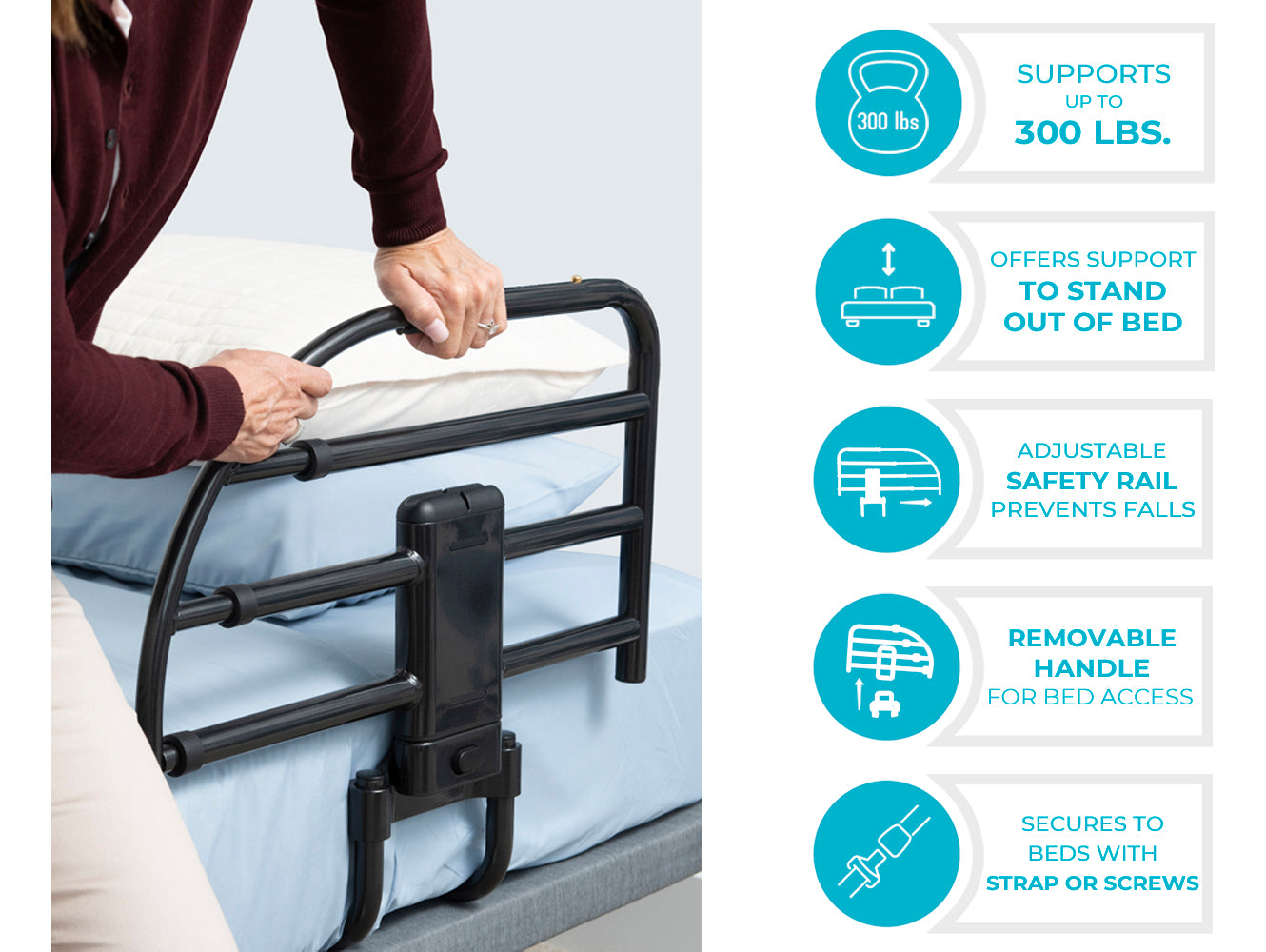 Bed rail extends in length from 23" to 30" for fall prevention at night
