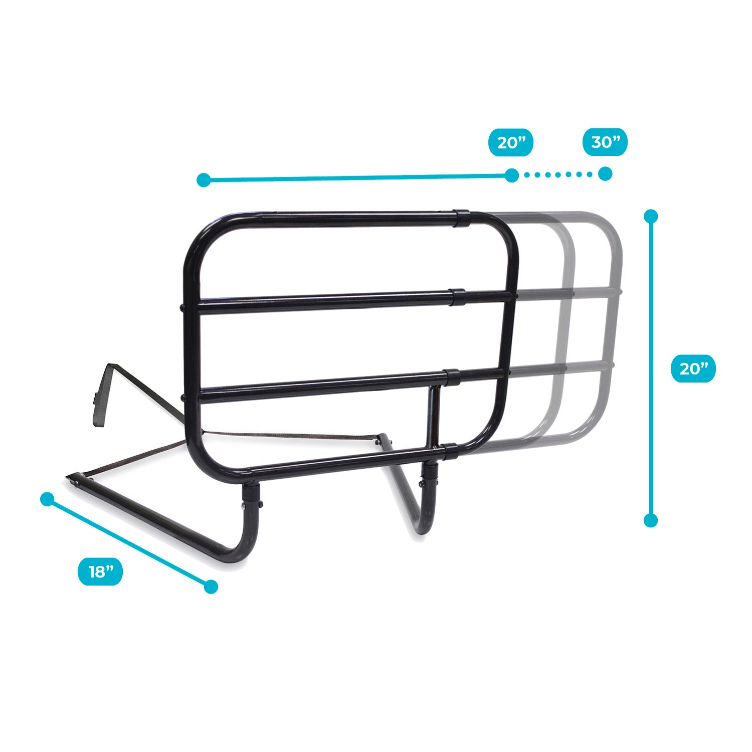 Bed rail extends in length from 20" to 30" for fall prevention at night