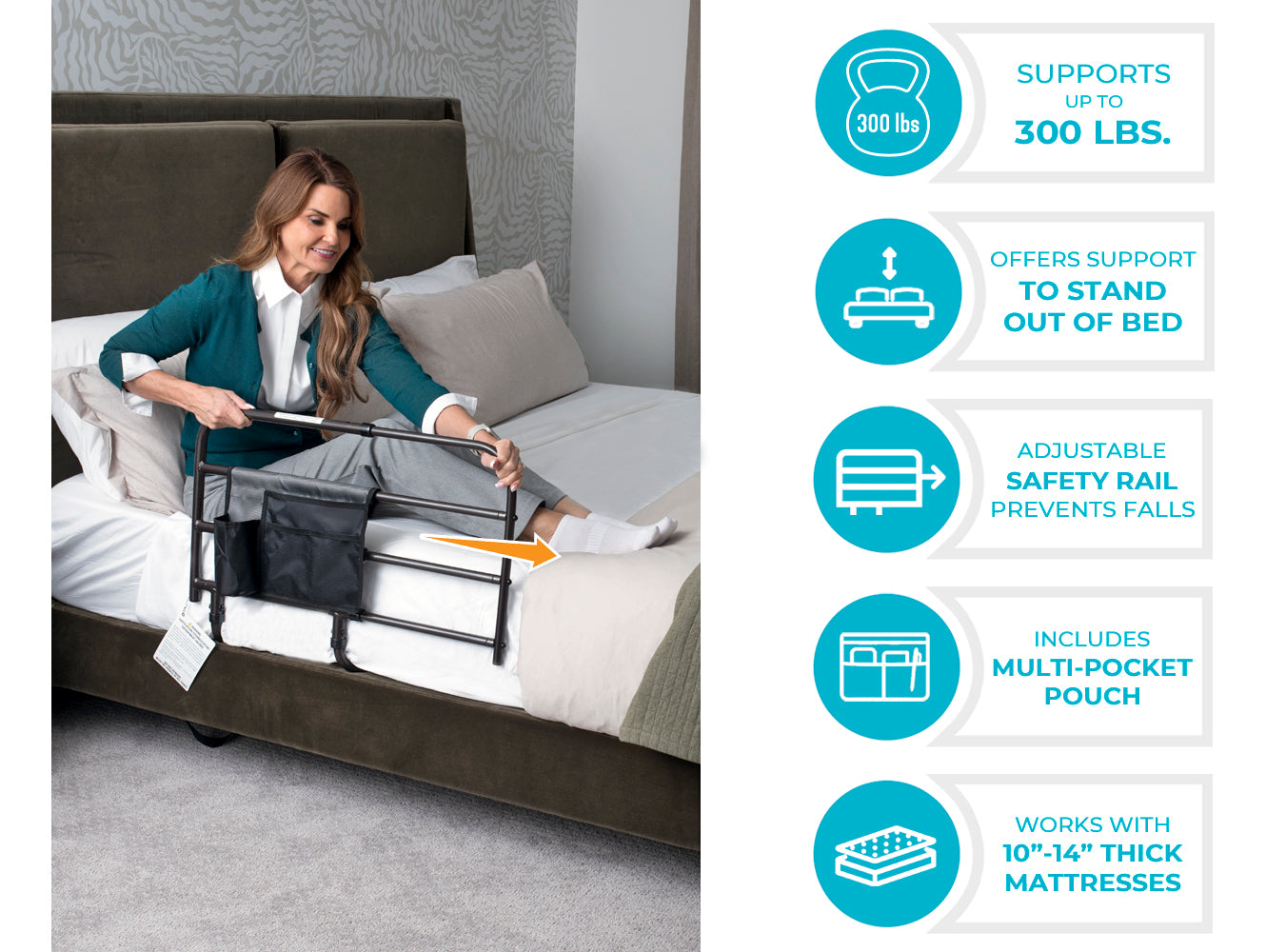 To ensure it is safe to use this product, test your mattress by taking your fist and applying about 12lbs (5.4kg) of weight on the edge of the mattress. If the mattress is soft enough that you can compress the mattress by about 2 in (51 cm) when applying 12 lbs (5.4 kg) of weight, do not use this product without the Bed Rail Safety Guard. Click here to learn more.