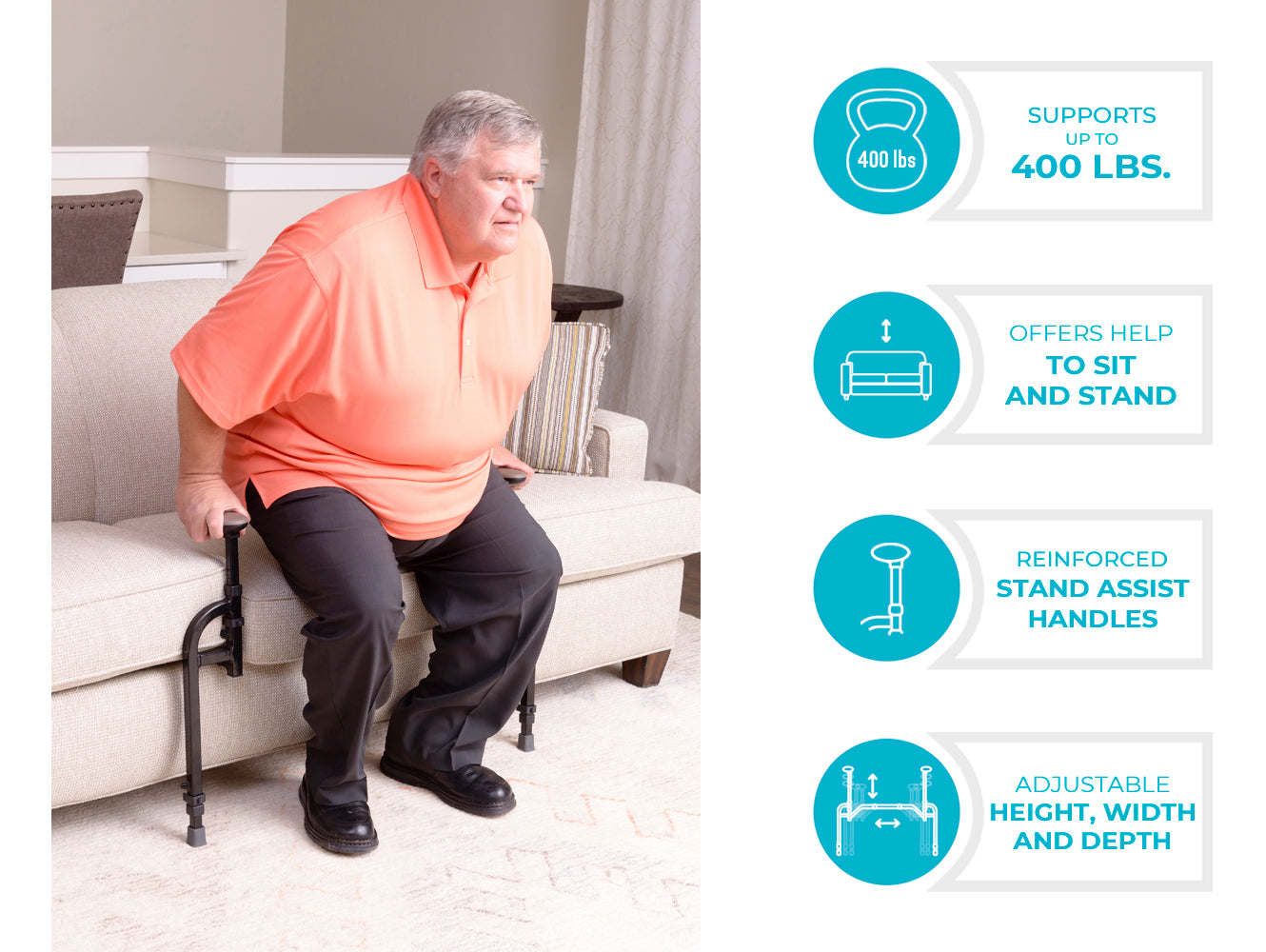 Adjust the handles and frame in height, width, and depth to fit your couch or chair cushion
