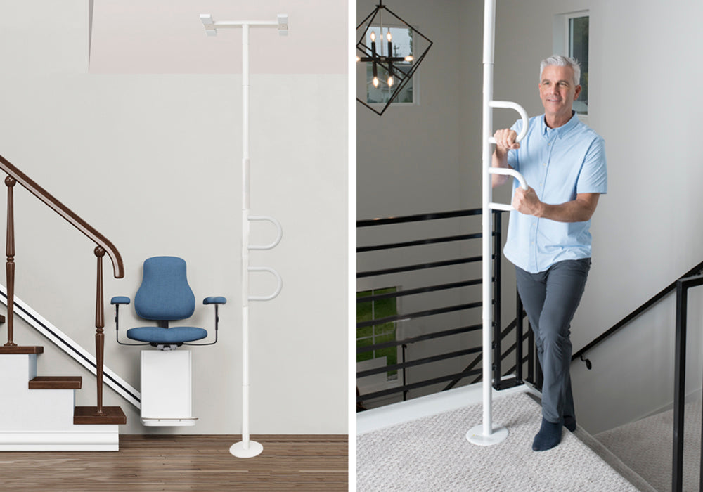 Place at the top and bottom of stairs to get out of a stairlift or steady yourself while stepping