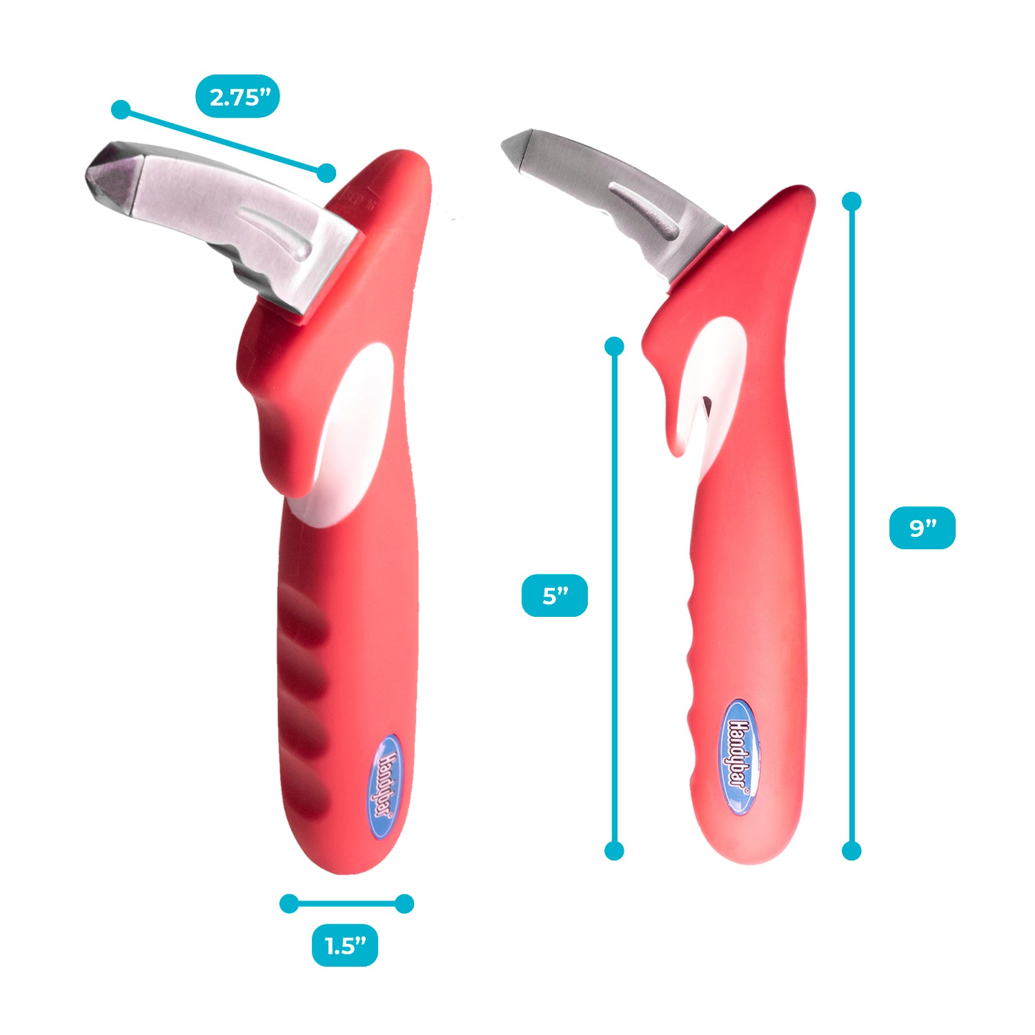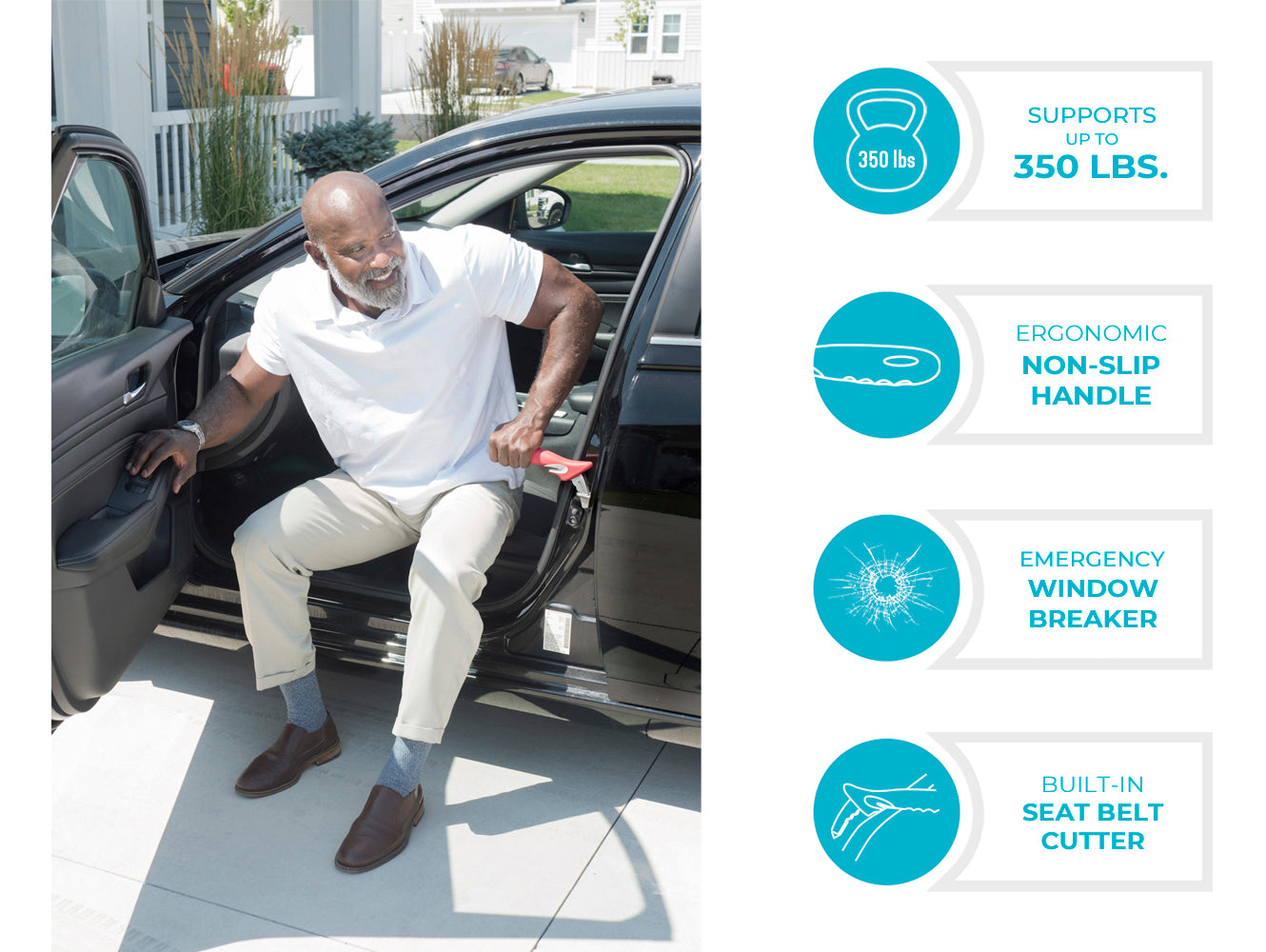 The HandyBar includes built-in safety features like a seat belt cutter and window breaker
