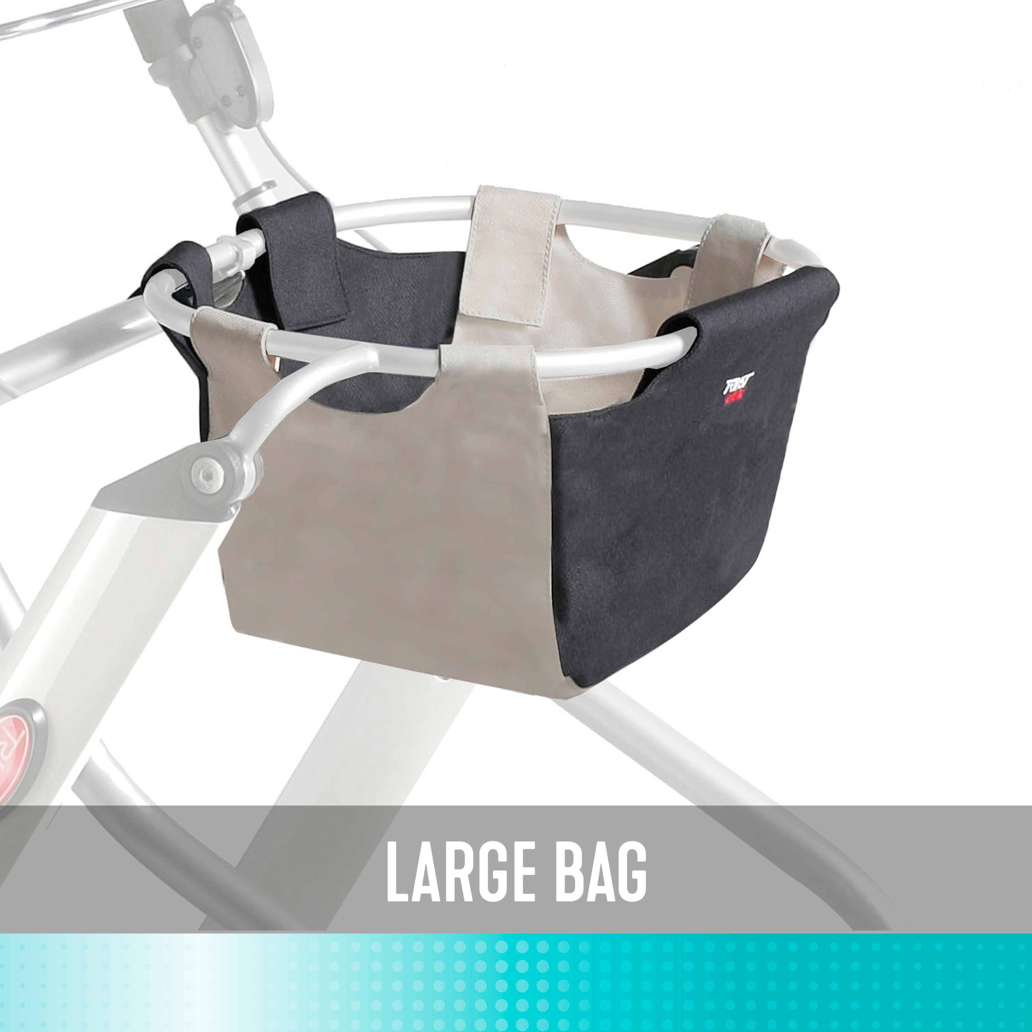 The large basket accessory is compatible with the Stander Let's Go Indoor Rollator (#4500).