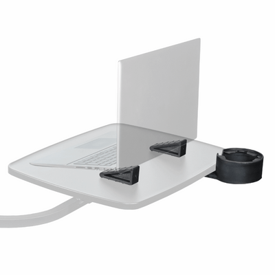 The table comes with an organizer bin/tablet hold holder/cup holder and an organizer saddle bag. Additional accessories can be purchased separately.