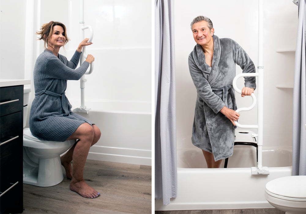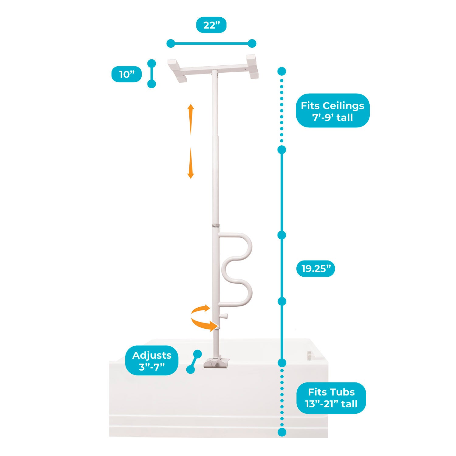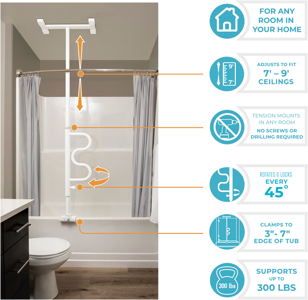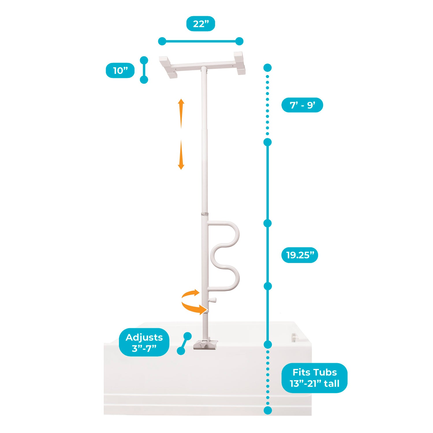 Use the bathtub pole for assistance while bathing, transferring, or standing
