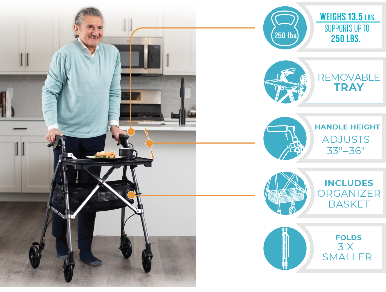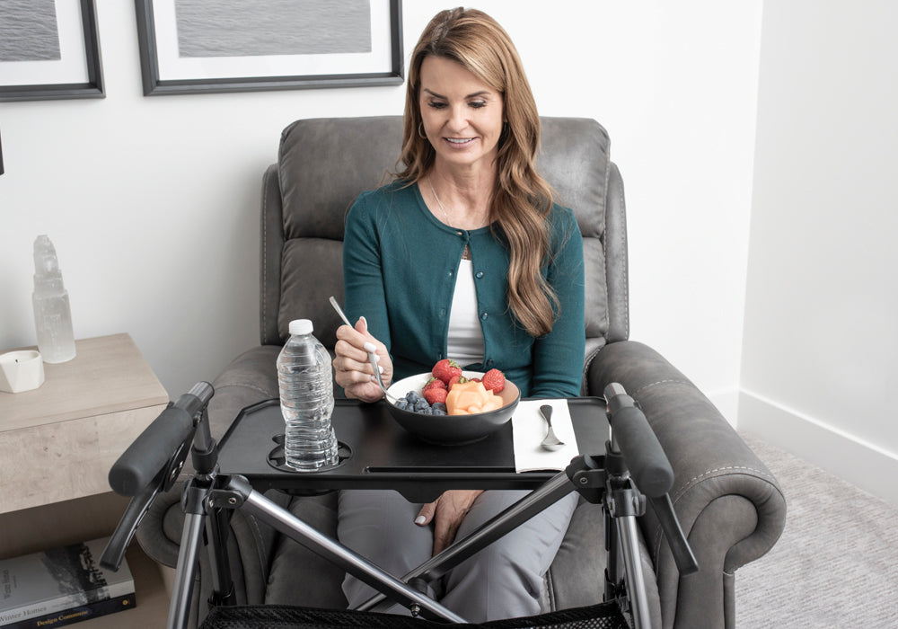 Use the rollator as a TV tray to eat meals from your favorite chair