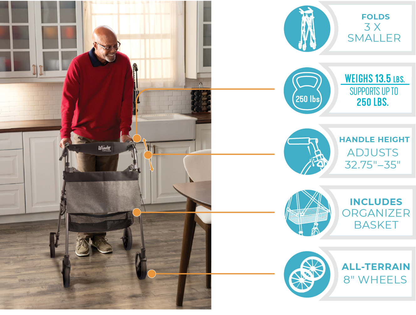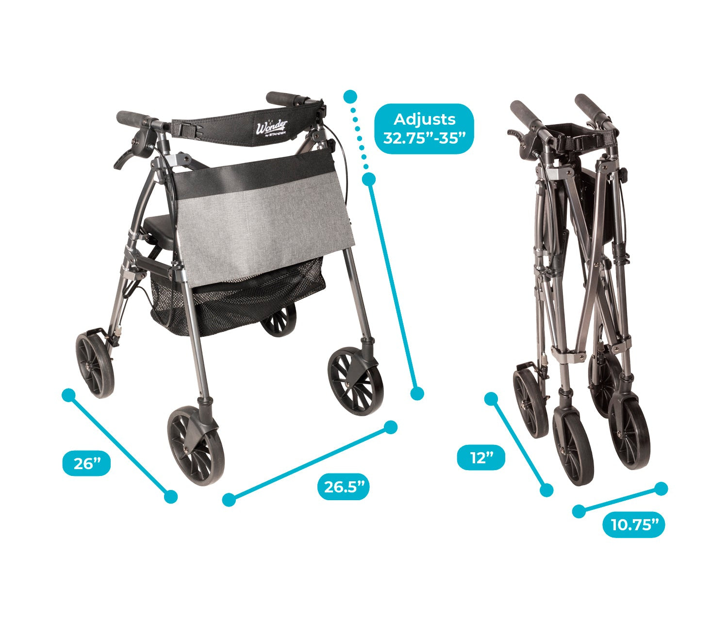 Wonder Rollator Plus with 8" Wheels
